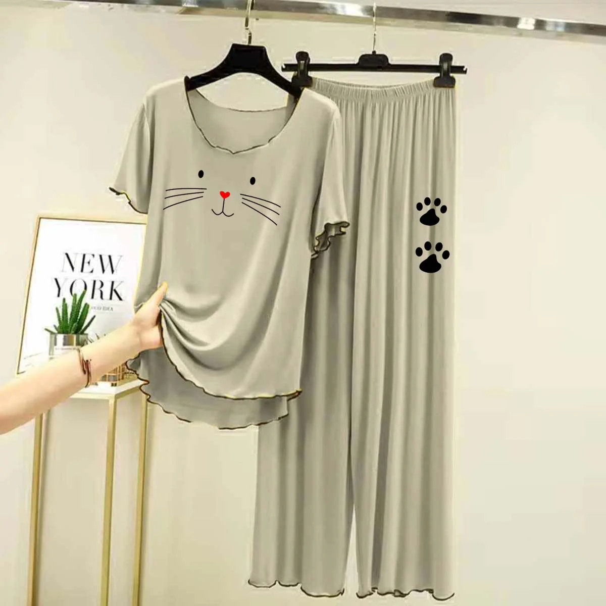 Cap-Sleeve Pocket-Style Logo-Printed 2-Pcs Lounge And Night Wear Suit. WLW-13